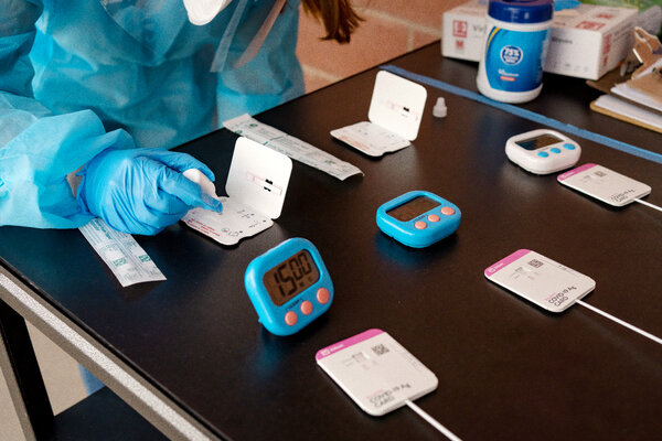 | Stefanie Friedhoff, a professor at Brown University’s School of Public Health, recently returned from a visit to Germany and wrote on Twitter about the many benefits of rapid testing that she had seen. A friend’s husband has Parkinson’s disease, and the friend leaves a batch of tests in her hallway for people to take before they enter the home. The day care center where Friedhoff’s sister works has stayed open throughout the pandemic, because the staff and children take frequent tests. |