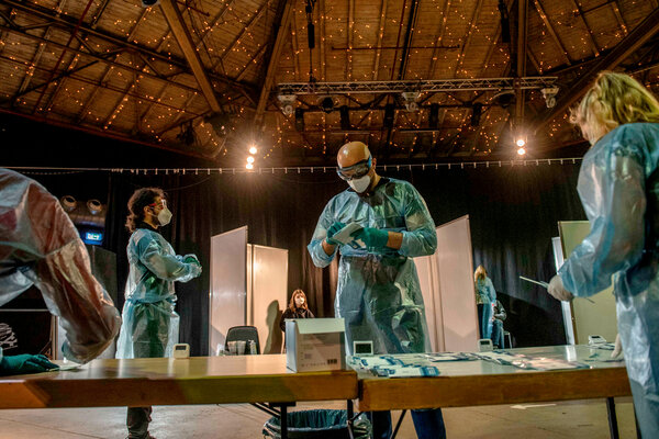| In Britain, France and Germany, rapid testing is widely available and inexpensive, thanks to government subsidies. People can visit testing sites, like tents outside pharmacies in France or abandoned nightclubs in Germany, and get tested at no charge. Many people also keep tests in their homes and self-administer them. “It’s been a way to put people’s minds at ease,” Melissa Eddy, a Times correspondent in Berlin, told my colleague Claire Moses. |