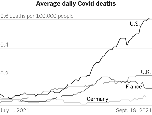 | The shortage of testing in the U.S. may be contributing to the virus’s spread. Recent outbreaks have been worse here than in Europe, even though Europe’s vaccination rate is only modestly higher. |